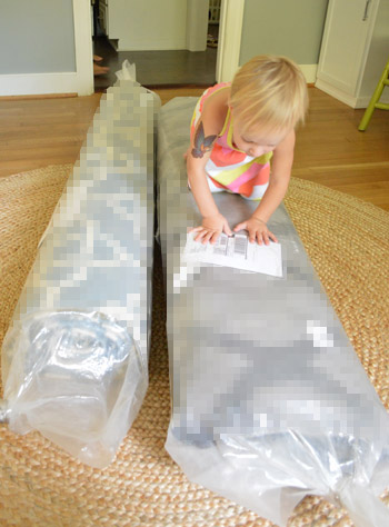 Update: Holy cow, you guys are full of so many fun ideas today! I’m having trouble keeping up with comments since they’re rolling in so furiously, but please know I’m reading them all and loving all the suggestions! Happy Friday! We’ve been all over the place this week, painting the walls/trim/ceiling in the bathroom & closet, diving into some basket craftiness, de-wallpapering our biggest room yet (the 21′ long kitchen), and now we have a little Clara-room update along with some photoshop percolating as we plot our next move in there. But first, here’s the tiny (and twinkly) addition: Things just got a little brighter in here… Ever since we hung her canopy, we’ve thought
