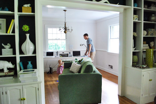 After yesterdays first house vs. current house comparison, this comment from Jess definitely got our wheels turning: “I think its an unfair comparison to put 8 months of work at the current place up against 4 + years at the old. You should have compared current photos from this house to what your old house looked like 8 months after you moved in there!!” Well, that’s probably not quite fair either, since we’ve definitely learned a ton in the last five years of homeownership (and also spend a lot more time doing house stuff these days since this DIY diary of ours is our job)… but we’re game! It’s Friday. But oh boy is this