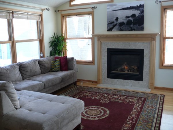 My “signature” item is a large photo printed on canvas that I took on our honeymoon in the North Shore of Minneapolis (photo here: http://2.bp.blogspot.com/_sa4jFrt3B4M/Sd4n-QU4zPI/AAAAAAAACt0/rlxfG7b6T4s/s1600/livingroom.jpg)