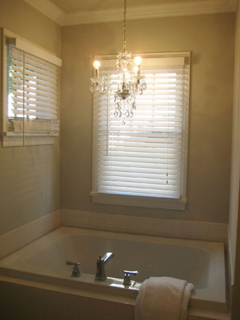 – The chandelier in the master bath isn’t to code, but we love the look, so we couldn’t resist! We installed it after the inspection. ;)