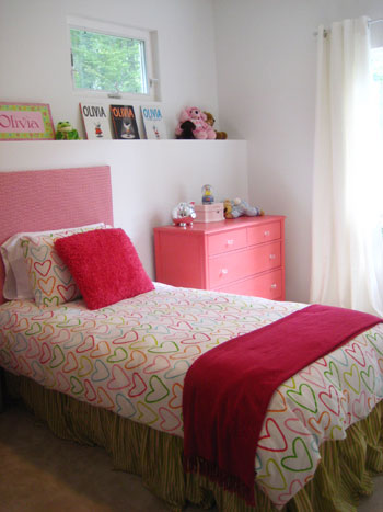 So what do you guys think? Isn’t Olivia’s new bedroom cozy and cute? Do you have any simple and affordable decorating tricks up your sleeves for transforming a kids room on a dime? Share and share alike.
