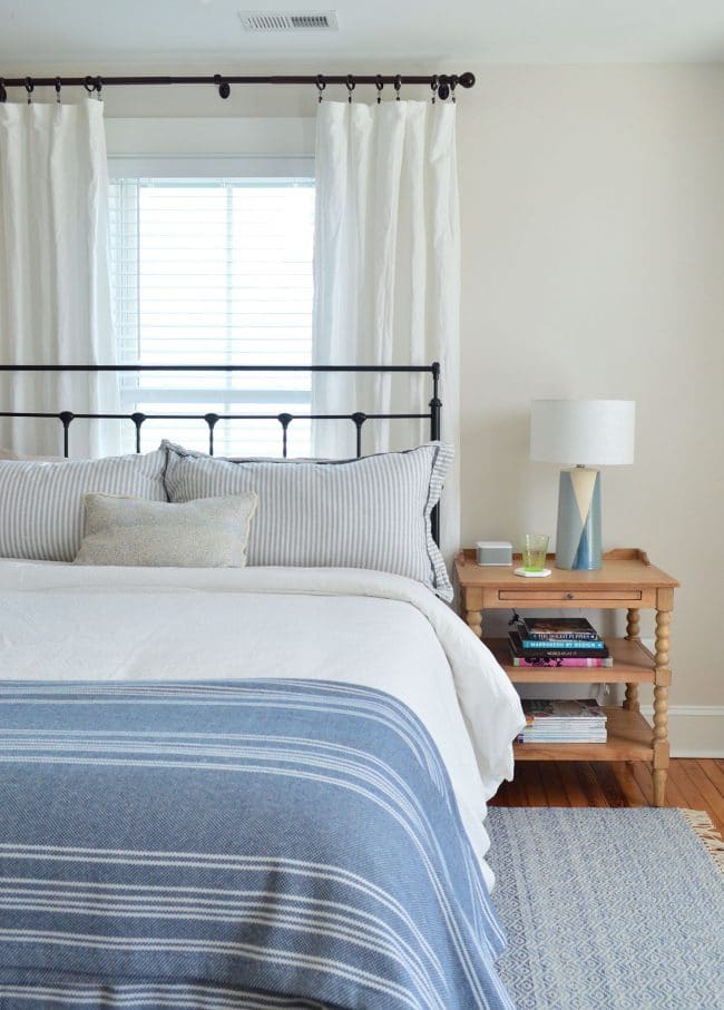 - I’m realizing I don’t have a lot of straight on “bed shots” from the beach house (can you tell we avoid taking them at all costs!?) but these give you a glimpse of the mix. And you can see how we split the striped duvet set across two beds – the bed above got the duvet itself, and the one below got the pillow shams: