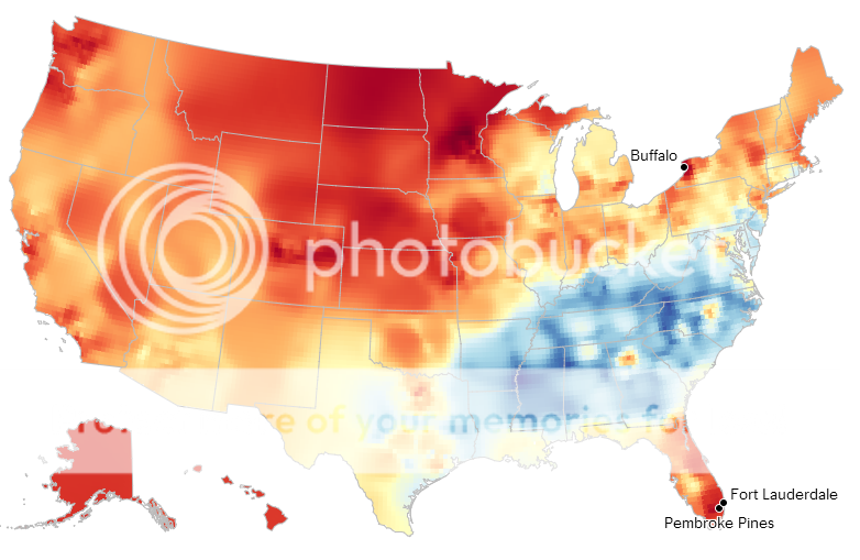 My map was dark red EVERYWHERE except for a few southern states. I live outside of Orlando, which was red too, but the cities the map specified were all in Colorado.