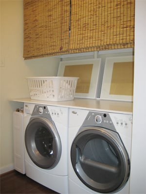 I love the idea of using the bamboo shades to hide the mess on laundry shelving! I am wondering if you use yours much? I have to access all of my soaps and supplies from the shelves everytime I do laundry and feel a little apprehensive as to how well the shades will hold up? Thanks!