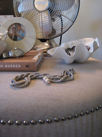 Love it! The nail heads are great and it looks wonderful in your room. I’ve been coveting one of those white Moroccan pouf ottomans in leather, but so far no luck finding any on sale (that don’t look really cheap).
