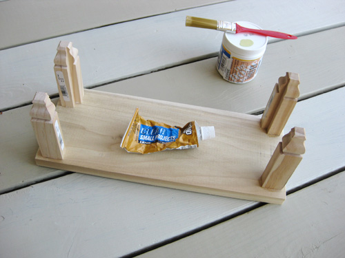 Gotta love that it was a tool-free project (no screws, nails or hammer required!) – and of course a few coats of exterior semi-gloss paint made it porch friendly in a snap (we had Glidden’s Safari Green color matched to a small Behr paint test container for a super cheap transformation):
